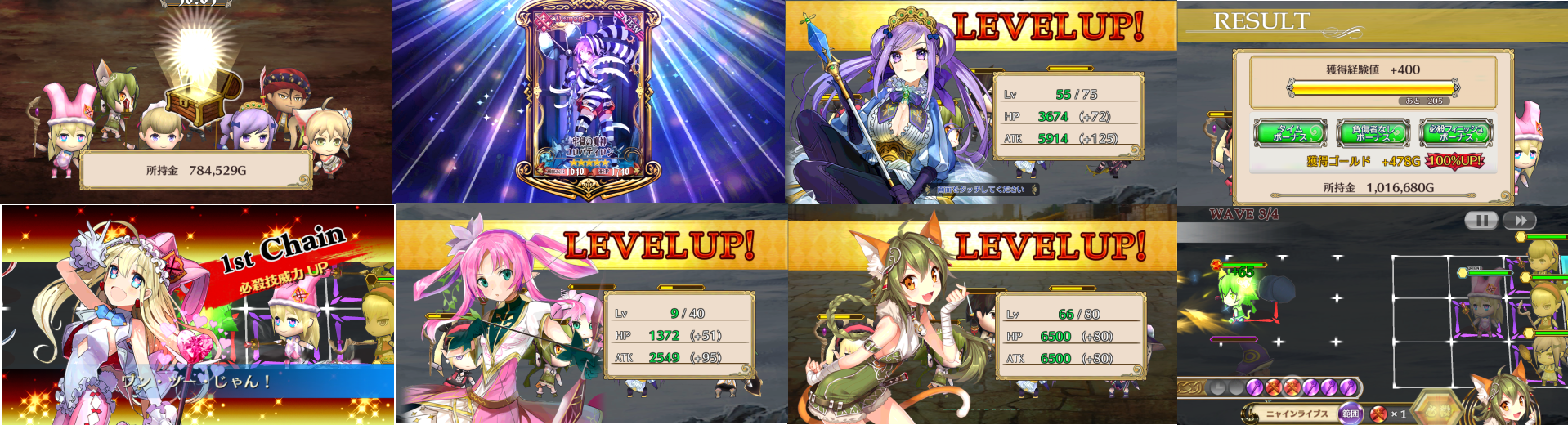 リザルト画面や戦闘によるEXP獲得でLvアップ、必殺技